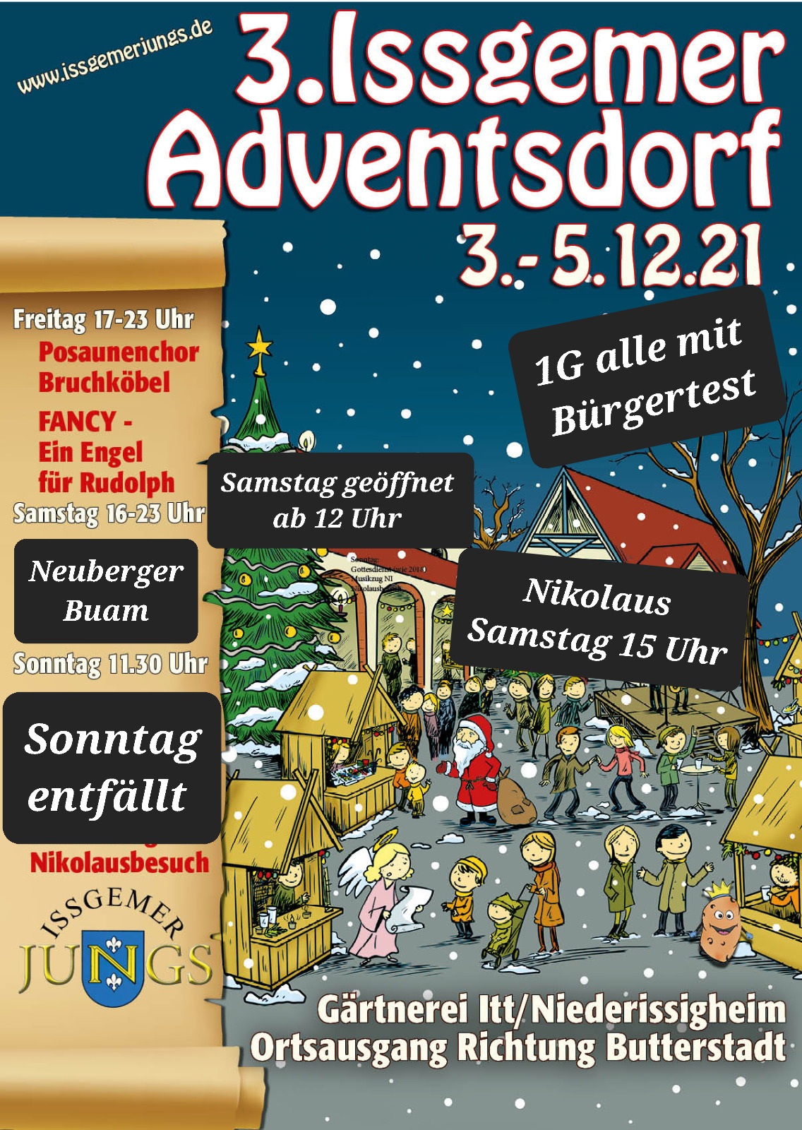 Wir haben uns entschlossen für das Adventsdorf die 1G Regelung durchzuführen, dies bedeutet egal ob geimpft oder ungeimpft muss man beim Einlass einen offiziellen Schnelltest vorweisen der nicht älter als 24 Stunden ist. ( Kinder bis 6 Jahren sind hier ausgenommen, bei Schülern reicht das Testheft )
